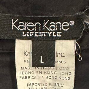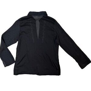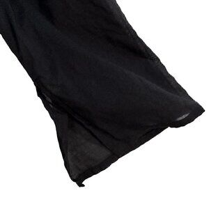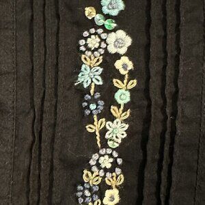 Karen Kane Black Semi Sheer Split Neck Boho Pleated Embordered Blouse