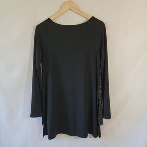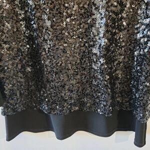 Karen Kane Black Sequin Blink Long Sleeve High-Low Crewneck Formal Top Size Small Stretchy