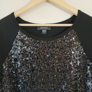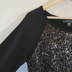Karen Kane Black Sequin Long Sleeve High-Low Crewneck Formal Top S Minimalist