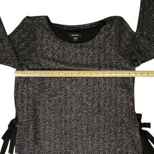 Karen Kane Black Silver Metallic Shimmery Evening Tunic Top with Side Bows Large