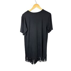 Karen Kane Black V-Neck Soft Knit Fringe Hem Dress Short Sleeve Summer Medium