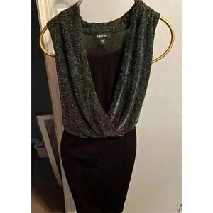 Karen Kane Black/Silver Metallic Drape Front Dress - $128