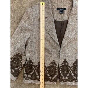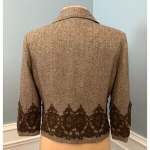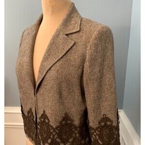 Karen Kane Blazer Womens 8 Tweed Wool Silk Lace Trim Lined Crop Jacket Academia