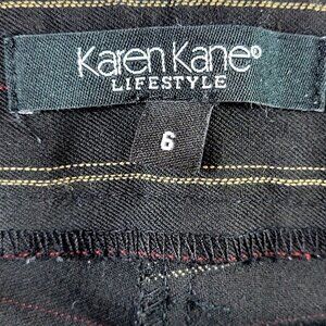 Karen Kane Bootcut Pants Size 6 Black Gold Red Pinstripe Zip Front Pockets 30X31