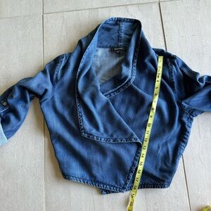 Size M. Elastic band in the back. Wrap style in the front. Super cute with so many outfits.