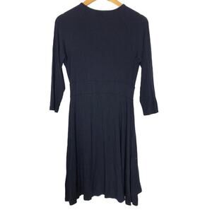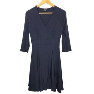 Karen Kane Dress Jersey Knit 3/4 Sleeve Drape Front Faux Wrap Navy Blue Small