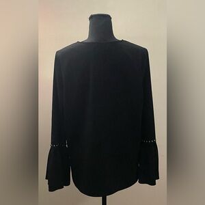 Karen Kane- Elegant Western Black and Silver Blouse