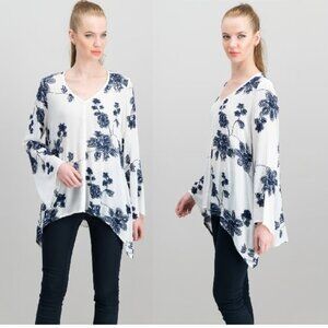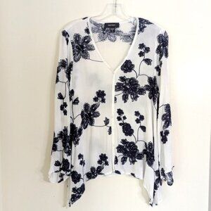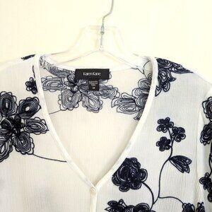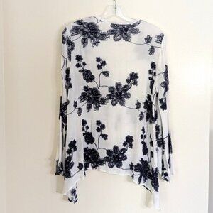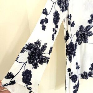 Karen Kane Embroidered High Low Blouse Off White/Navy Size M