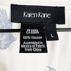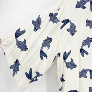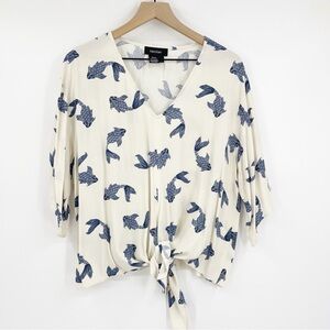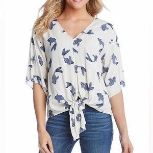 Karen Kane Fish Print V-Neck Short Flutter Sleeve Tie Front Top Blue Size Large