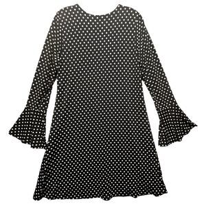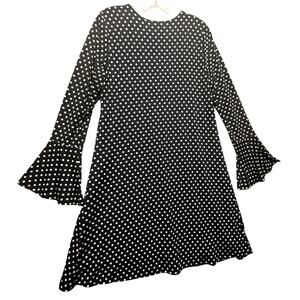 Karen Kane Flare Sleeve Polka Dot Dress Black White Sz L EUC Flirty Whimsigoth