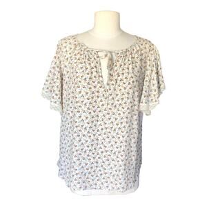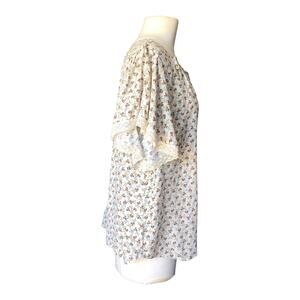 Karen Kane Flutter Sleeve Ruffle Top Floral Print Blouse Women's Size XS NWT