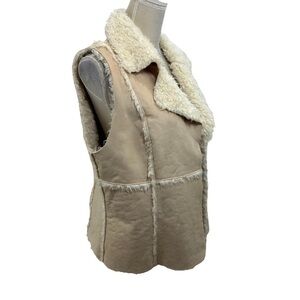 Karen Kane Ivory Open Front Vest Jacket Faux Suede Fur Woman's Large