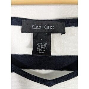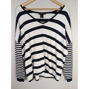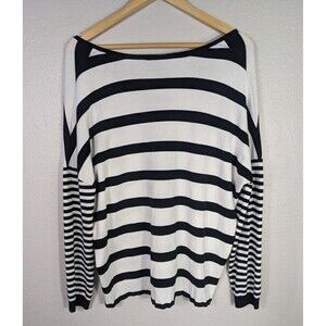 Karen Kane L Black White Nautical Striped Pullover Sweater Super Soft Vneck N56