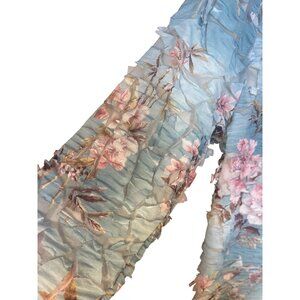 Karen Kane L Floral Top Blue and Pink 3/4 sleeves Textured Unique Fairy