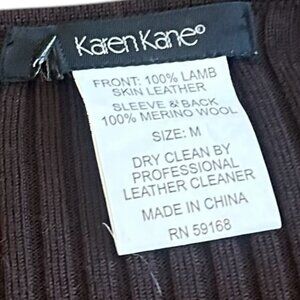 Karen Kane Lamb Leather Merino Wool Button Down Jacket Sweater Knit Size Medium