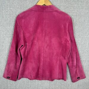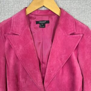 Keywords: Karen Kane, Leather Blazer, Suede Jacket, Pink Blazer, Fitted Blazer, Career Jacket, Women's Blazer, Leather Coat, Suede Coat, Pink Jacket, Size M, Medium, Classic Blazer, Vintage Blazer