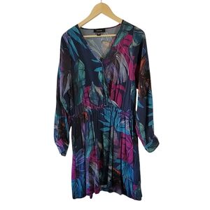 Karen Kane Long Sleeve Faux Wrap Dress Sz L Colorful Versatile USA Resortwear