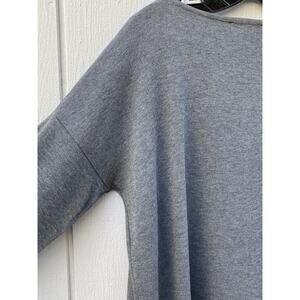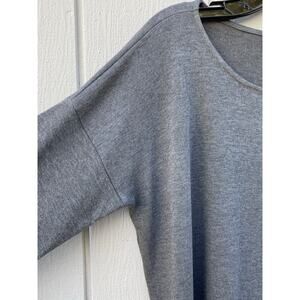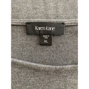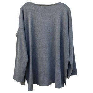 Karen Kane Long Sleeve Gray Pullover Top w/ Front Denim Pocket Sz L Cotton Blend
