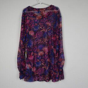 Karen Kane Mesh Top Women's Size M Multicolor Long Sleeve Hippie Festival Boho