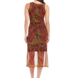 Karen Kane Midi Scoop Neck Fern Print Dress - Size S - Rust Multi - Approximately 43" from back of neck - Liner approximately 33" from back of neck - NEVER WORN