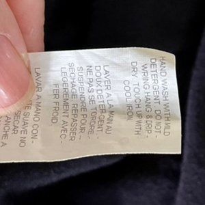 Dressy navy blue Karen Kane top for evening wear. Deep v-neck has dressy grey blue sequined circle button for a ruched front. Top is soft and a comfortable form fit. It is 90% rayon with 10% spandex. Hand washable. Pictures do not do justice to the navy color and sequin accent. Smoke and pet free home.