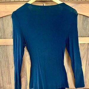 Karen Kane Navy Blue Long Sleeved V Neck Top, Sz M