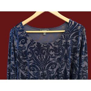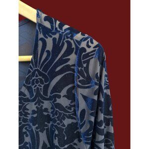 Karen Kane Navy Velvet Burnout Damask Blouse Plus Size Elegant Baroque Top 1X