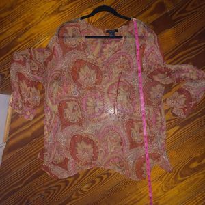 Karen Kane Orange Flowery 100% Silk Sheer Blouse Size 2X