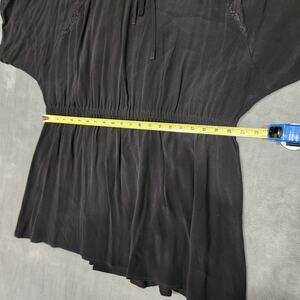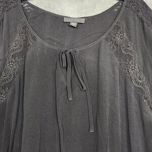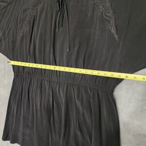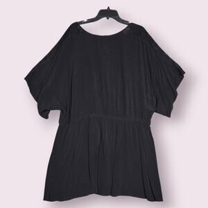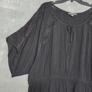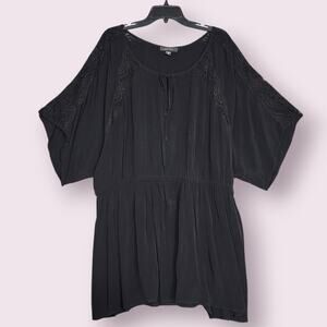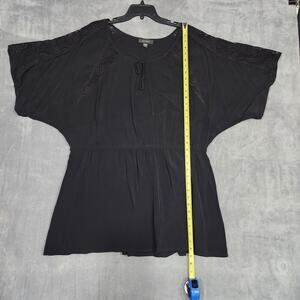 Karen Kane Peasant Long Blouse Black Lace Detail 3X Key Hole Collar Boho