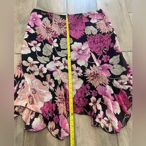 Karen Kane Pink Floral Plus Size 100% Silk Skirt Side Zipper Lined Size 14