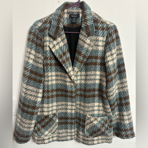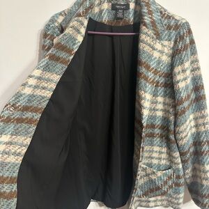 Karen Kane Plaid Jacket Coat - Blue, Brown, Cream, Wool, size XL