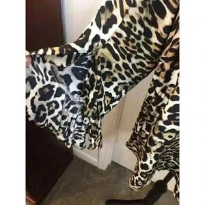 Karen Kane Plus Size 0X Leopard Print Blouse Bell Sleeves L/S USA Made