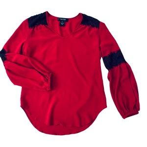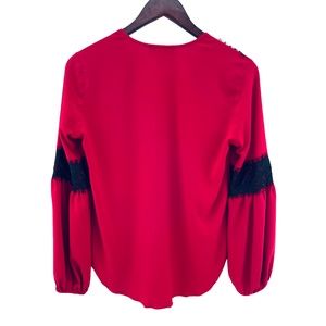 Karen Kane Red With Black Lace Rayon Blouse Sz XS