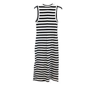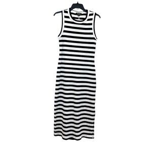 Karen Kane Ribbed Black Cream Striped Sleeveless Midi Tank Column Dress M NWT