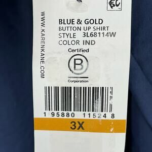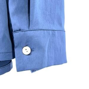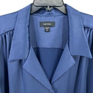 Karen Kane Satin Button Front Shirt Womens Plus Size 3X Indigo Blue V Neck