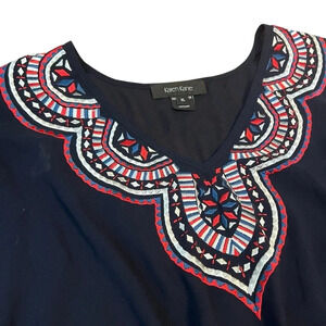 Karen Kane Sheer Navy Embroidered Tie Waist Blouse XL