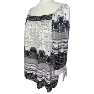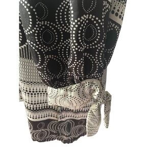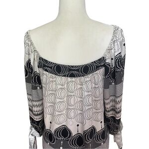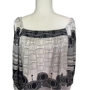 Karen Kane Silk Like Blouse Black White Geometric Pattern L