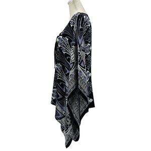 Karen Kane Silk Scarf Print Flutter Kimono Blouse Top Keyhole Tie Front One Size