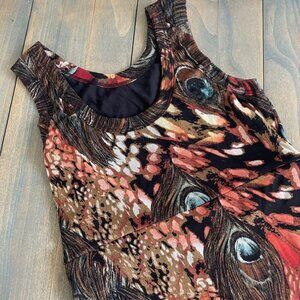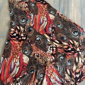 Karen Kane Sleeveless Scoop Neck Midi Hi-Lo Dress Peacock Feathers Large (Q8)