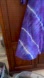 Boho vivid purple jersey dress with garment tie-dye pattern. Features scoop neckline and 1/2 sleeves. Fabric tag missing but contains 90% Rayon 10% Spandex