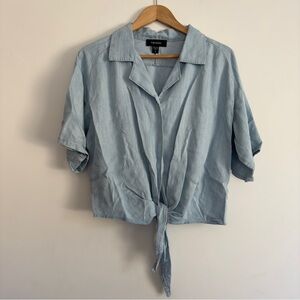Karen Kane Tie-Front vintage washed chambray top size: small