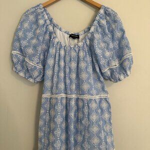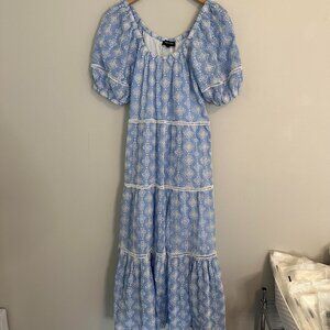 Karen Kane Tiered Embroidered Eyelet Puff Sleeve Midi Dress Cottagecore Boho XS