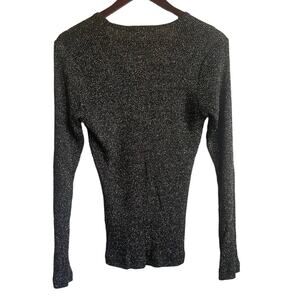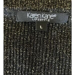 Karen Kane Top Women L Black Gold Metallic Rayon Knit Stretch Event Glam Dressy