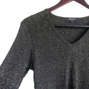 Karen Kane Top Women L Black Gold Metallic V-Neck Rayon Knit Stretch Event Glam