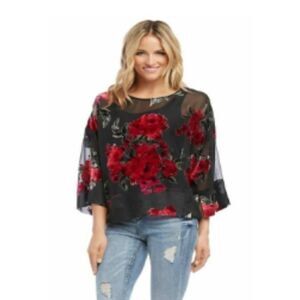 Karen Kane Velvet Burnout Side Slit Top Size L