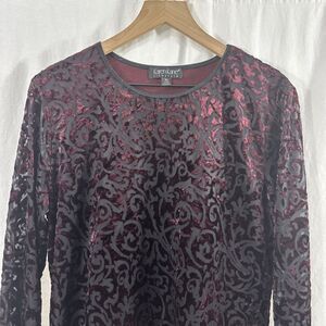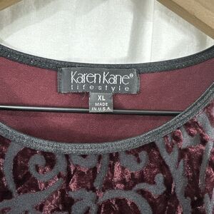 Karen Kane Vintage Dark Romantic Burnout Velvet Burgundy Top Womens Size XL