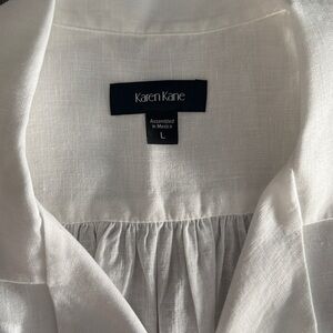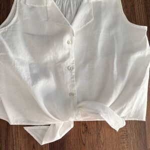 Karen Kane White Linen sleeveless Blouse. Button down with tie at the waist