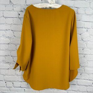 Karen Kane Women's Amber Wave Tie Sleeve V-Neck Blouse Top, Size Large, Mustard