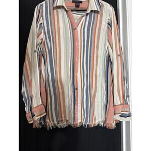 Karen Kane Womens Fringe-Hem Button Up Shirt, Multicolored plus 2x shacket boho