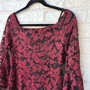 Karen Kane Women's L Burgundy Lace Off-The-Shoulder Knee Dress Party/Cocktail
